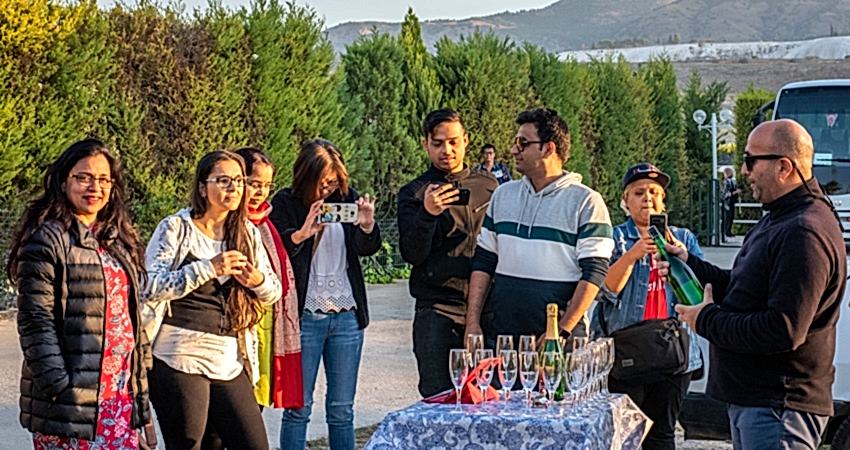 When the celebration is over, we will take you to Pamukkale and give you 3 hours of free time to discover this natural beauty on your own. There are many places to visit during your free time, such as the white cliffs, the ancient theater, Hierapolis and Cleopatra's pool.