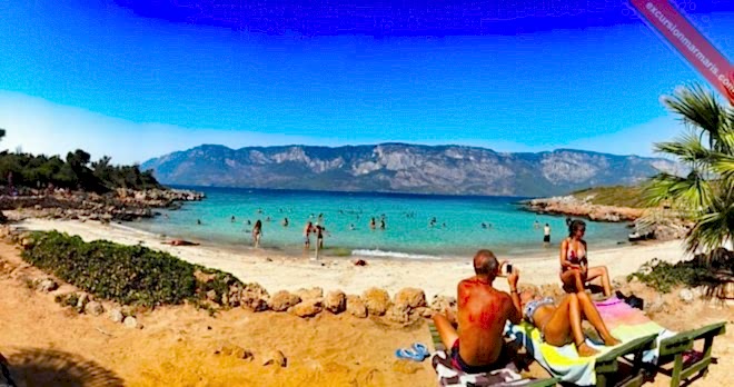 We were picked from our hotel in Marmaris at 9 am and our shuttle bus took us to Camli Village (about 20 minutes away) to catch our boat to Sedir Island. It was smooth sail to the island (the island is a museum entrance fee to the island is 20 tl but our trip also includes the entrance fee so we didnt pay any extra). There is literally no buildings on the island. The island was outstanding! Beautiful protected beach in a small bay with crystal clear and blue water. It was a great trip with beautiful sea, beach, ruins, and no hotels !