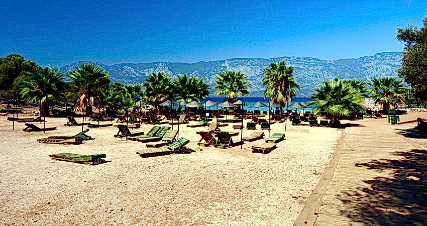 Cleopatra Island among the beautiful Gokova Bay is an excellent place to visit. The stunning scenery gives you a delightful feeling and you’ll love to swim and play among fantastic coves around here. The island has pristine, white sandy beach with fine sand particles as soft as flowers! You’ll feel as if you are walking on clouds while you walk on this beach.