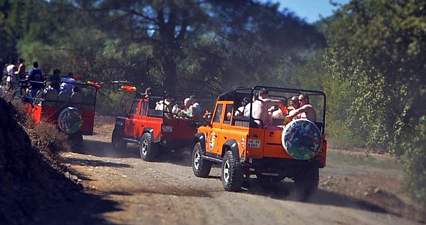 Jeep Safari takes place every day during the morning. The Jeep will pick you up from your hotel in Marmaris and transfer you at a place where other Jeeps are. The convoy will start driving you towards the mountains. In an effort to enjoy an amazing experience, during the off-road driving, several stops will take place. For example, you will visit some impressive waterfalls and get the chance to swim into the emerald waters. Furthermore, a stop at a small village is also included where you can meet and interact with the locals. The Marmaris Jeep Safari has an approximate duration of 6 hours. By the end of the tour, during the afternoon, the Jeeps will drive you back to your hotel.