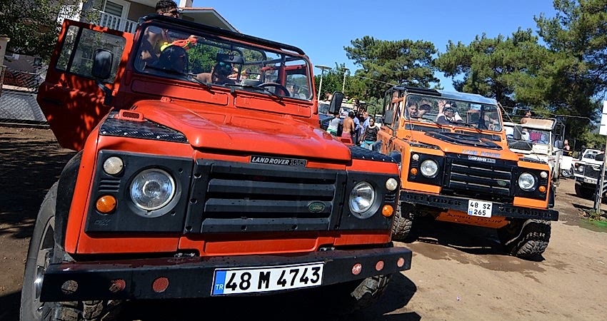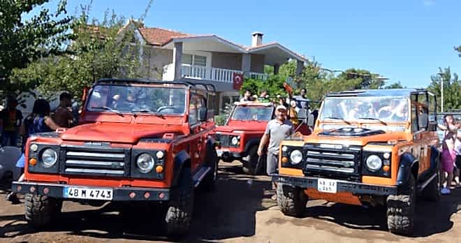 The duration of a typical Marmaris Jeep Safari Excursion is about 6 hours. These safari tours are available to be taken form Marmaris, icmeler and Armutalan, everyday from April to October. The trip fee includes pick-up and drop-off services, insurance, lunch and complete guidance. Remember to bring your sun cream with you. The trip begins with a pick-up from your hotel at about 9:30 am and ends at about 16:00 pm. The convoy of well-maintained jeeps will take you to different places like the Turgut village.