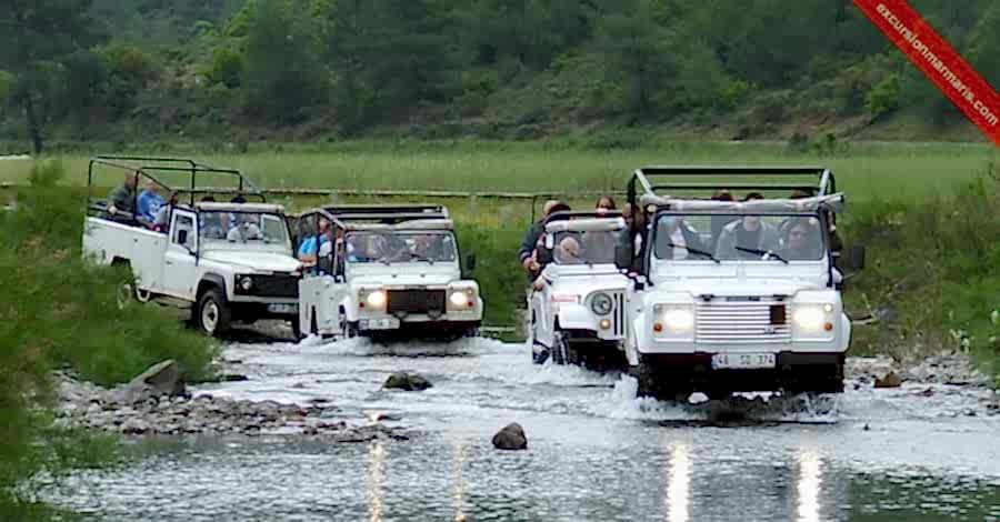 Appoint a convoy for you and move your jeep with teams among the special tracks of mud, asphalt, water and sand, which are free from the busy traffic you mostly find in the tourist areas of Marmaris. Move through the pine forest and visit interesting hamlets, attractive waterfalls, river streams, beautiful beaches and other marvelous landscapes around the spectacular nature of Marmaris.