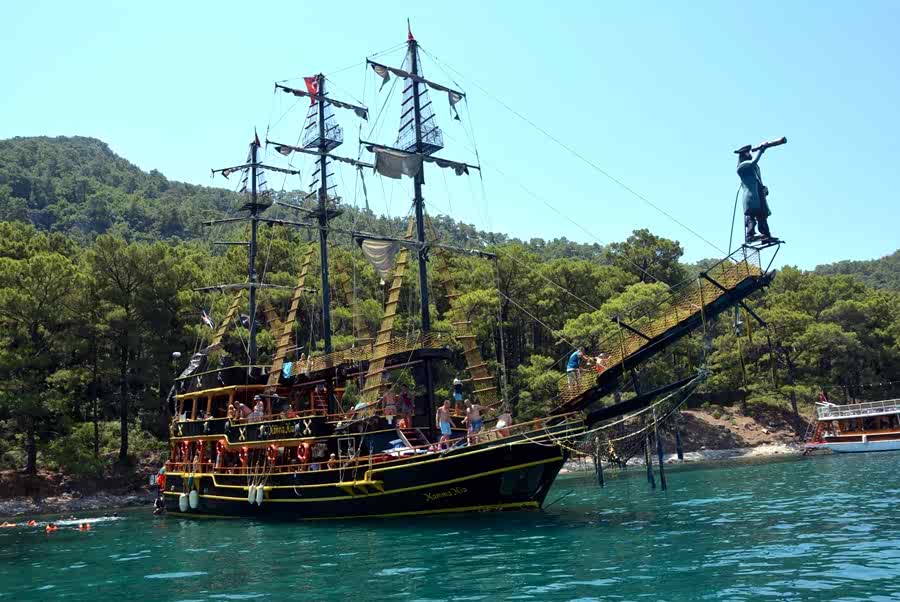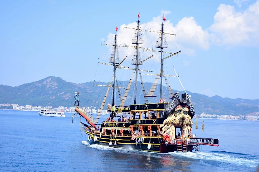 If you are planning a vacation to Marmaris this summer, cruising the sparkling blue waters of the Mediterranean Sea on the Marmaris Pirate Boat Trip is a must. Marmaris Pirate Boat can accommodate approximate 200 people at once, making it one of the biggest pirate boats in Marmaris.